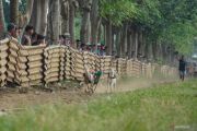 Peserta mengarahkan kambing untuk berlari saat lomba karapan kambing di lapangan Kelurahan Jrebeng Kulon, Kecamatan Kedopok, Probolinggo, Jawa Timur, Sabtu (19/4/2025). Karapan kambing yang diikuti 96 peserta tersebut digelar oleh Komunitas Pecinta Budaya Karapan Probolinggo dalam rangka menjaga tradisi dan termasuk dalam rangkaian Festival Budaya Kerapan Probolinggo. ANTARA FOTO/Irfan Sumanjaya/foc.