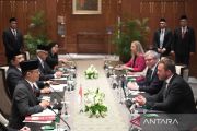Menteri Luar Negeri Sugiono (kanan) mempersilakan Menteri Luar Negeri Estonia Margus Tsahkna (kiri) sebelum pertemuan bilateral di Jakarta, Rabu (23/4/2025). Pertemuan itu untuk mempererat hubungan bilateral kedua negara serta menjajaki peluang kerja sama di bidang perdagangan, ekonomi, dan digitalisasi. ANTARA FOTO/Akbar Nugroho Gumay/tom.