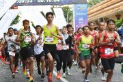 Sejumlah peserta memacu kecepatan saat mengikuti East Java Running Fest 2025 di Kota Madiun, Jawa Timur, Minggu (27/4/2025). Kegiatan olah raga lari dengan jarak tempuh 5KM dan 10KM tersebut diikuti sekitar 1.500 peserta dari berbagai daerah di Indonesia. ANTARA FOTO/Siswowidodo/foc.