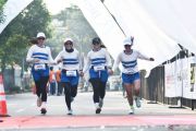 Peserta memasuki garis finis saat mengikuti East Java Running Fest 2025 di Kota Madiun, Jawa Timur, Minggu (27/4/2025). Kegiatan olah raga lari dengan jarak tempuh 5KM dan 10KM tersebut diikuti sekitar 1.500 peserta dari berbagai daerah di Indonesia. ANTARA FOTO/Siswowidodo/foc.