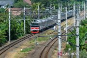 Rangkaian KRL Commuter Line melintas di Rangkasbitung, Lebak, Banten, Rabu (7/5/2025). Pemerintah Kota Serang bekerja sama dengan PT Kereta Api Indonesia (KAI) Daerah Opersional (Daop) 1 Jakarta berencana membangun jalur kereta KRL Commuter Line hingga menuju Kota Serang guna memudahkan konektivitas antarwilayah dan meningkatkan ekonomi masyarakat dengan konstruksi fisik ditargetkan dibangun pada tahun 2026. ANTARA FOTO/Muhammad Bagus Khoirunas/Spt.