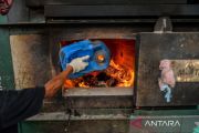 Petugas memasukkan sampah ke dalam mesin insinerator di TPST Motah Bakul Agamis, Gempolsari, Bandung Kulon, Bandung, Jawa Barat, Kamis (8/5/2025). Pemprov Jawa Barat menggagas langkah untuk mengatasi krisis sampah terutama di Kota Bandung, salah satunya pembangunan 60 insinerator di berbagai lokasi Bandung Raya. ANTARA FOTO/Raisan Al Farisi/tom.