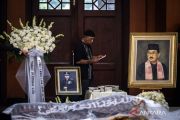Kerabat berdoa saat melayat almarhum tokoh Pencak Silat Dunia atau dikenal Bapak Pencak Silat Dunia Mayjen TNI (Purn) Eddie Mardjoeki Nalapraya di Padepokan Pencak Silat TMII di Jakarta, Selasa (13/5/2025). Pendiri Persukutuan Pencak Silat Antarbangsa (Persilat) pada 1980 itu wafat di usia 93 tahun dan akan dimakamkan di Taman Makam Pahlawan Kalibata. ANTARA FOTO/Bayu Pratama S/bar
