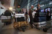 Sejumlah warga negara Indonesia (WNI) yang tinggal Muscat, Yaman Selatan, didampingi Direktur Perlindungan WNI Judha Nugraha (kanan) berjalan keluar terminal setibanya di Terminal 3 Bandara Soekarno-Hatta, Tangerang, Banten, Kamis (22/5/2025). Kementerian Luar Negeri pada gelombang pertama, berhasil mengevakuasi 10 WNI dari wilayah konflik di Yaman Utara. ANTARA FOTO/Muhammad Iqbal/foc.
