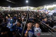 Ribuan penonton memberikan dukungan saat pertandingan Persib Bandung melawan Persis Solo pada laga terakhir BRI Liga 1 2024/2025 di Stadion Gelora Bandung Lautan Api (GBLA), Bandung, Jawa Barat, Sabtu (24/5/2025). ANTARA FOTO/Novrian Arbi/rwa.