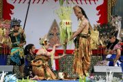 Seniman melaksanakan prosesi siraman saat tradisi Manten Tebu (Pengantin Tebu) yang merupakan penanda dimulainya masa produksi gula di PG Rejoso Manis Indo (RMI) Blitar, Jawa Timur, Senin (26/5/2025). Prosesi adat mengawinkan tebu lanang dan tebu wadon tersebut sebagai perwujudan rasa syukur petani tebu atas hasil panen yang melimpah sekaligus sebagai doa agar dapat menghasilkan gula yang berkualitas. ANTARA FOTO/Irfan Anshori/YU