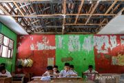 Sejumlah siswa membaca buku usai mengikuti ulangan di SD Negeri Binangun, Kabupaten Serang, Banten, Selasa (10/6/2025). Sebanyak lima ruang kelas di sekolah tersebut mengalami kerusakan dengan kondisi sebagian atap ruang kelas ambruk sejak tahun 2019 sehingga para siswa khawatir saat proses kegiatan belajar mengajar dapat tertimpa atap yang ambruk akibat kayu yang sudah lapuk. ANTARA FOTO/Muhammad Bagus Khoirunas/bar