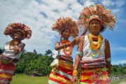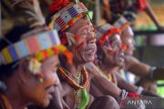 Sejumlah istri Sikerei (dukun Mentawai) mengikuti ritual pada upacara memperingati kematian di Dusun Onga, Desa Matotonan, Siberut Selatan, Kepulauan Mentawai, Sumatera Barat, Sabtu (5/7/2025). Upacara adat memperingati kematian (kamateijat) atau disebut ritual E'eruk itu merupakan aktivitas pembersihan diri dari hal-hal buruk menurut kepercayaan masyarakat adat Mentawai yang diikuti oleh keluarga dan seluruh anggota uma (rumah Mentawai) dari seseorang yang telah meninggal dunia. ANTARA FOTO/Iggoy el Fitra/bar