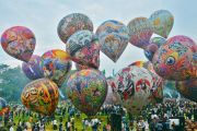 Warga menyaksikan penerbangan balon tradisional saat acara Java Balloon Attraction 2025 di lapangan Taman Rekreasi Kalianget, Wonosobo, Jawa Tengah, Minggu (6/7/2025). Atraksi penerbangan sebanyak 36 balon tradisional berbagai motif dengan membentuk formasi Gunung Sindoro dan Telaga Menjer dalam rangkaian harı jadi ke-200 Kabupaten Wonosobo tersebut sekaligus sebagai salah satu even budaya untuk meningkatkan kunjungan wisata. ANTARA FOTO/Anis Efizudin/bar