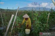 Petani memanen cabai di lahan pertanian Desa Supiturang, Kecamatan Pronojiwo, Lumajang, Jawa Timur, Jumat (11/7/2025). Sejumlah lahan pertanian cabai dan tomat di kaki Gunung Semeru tersebut mengalami penurunan produksi dengan perbandingan per 1.000 meter persegi hanya menghasilkan 200 kilogram dari produksi normal 500 kilogram per musim panen akibat tanaman rusak dampak anomali cuaca kemarau basah. ANTARA FOTO/Irfan Sumanjaya/nym.