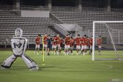 Sejumlah pesepak bola Timnas Indonesia U-23 mengikuti sesi latihan resmi jelang babak final ASEAN U-23 Championship di Stadion Madya, Kompleks GBK, Senayan, Jakarta, Senin (28/7/2025). Pada babak final ASEAN U-23 Championship Timnas Indonesia U-23 akan bertanding melawan Timnas Vietnam U-23 di Stadion Utama Gelora Bung Karno pada Selasa (29/7). ANTARA FOTO/Dhemas Reviyanto/foc.