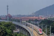 Kereta cepat Whoosh melintas di Kota Cimahi, Jawa Barat, Kamis (31/7/2025). Menteri Koordinator Bidang Infrastruktur dan Pembangunan Kewilayahan Republik Indonesia Agus Harimurti Yudhoyono menyatakan saat ini pemerintah tengah mempercepat kajian terkait usulan perluasan (jalur) Kereta Cepat Jakarta-Bandung (KCJB) atau Whoosh ke Surabaya guna mempercepat mobilitas yang terintegrasi dan efisien di seluruh Pulau Jawa. ANTARA FOTO/Abdan Syakura/foc.