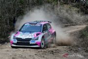 Pereli Indonesia Aldio Oekon bersama navigator Respati Adhi memacu kecepatan mobilnya pada kelas RC2, Spesial Stage-1, Asia Pacific Rally Championship (APRC) 2025 di Simalungun, Sumatera Utara, Sabtu (9/8/2025). Sebanyak 48 pereli dari sejumlah negara Asia mengikuti putaran pertama ajang APRC 2025 yang berlangsung hingga Minggu, 10 Agustus 2025. ANTARA FOTO/Fransisco Carolio/bar