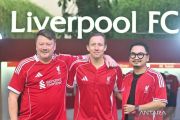 Legenda Liverpool asal Brasil Lucas Leiva berpose saat Meet and Greet di Liverpool FC Pop Up Shop di kawasan Kuta, Badung, Selasa (12/8/2025). Kegiatan itu diselenggarakan sebagai rangkaian peluncuran jersi kandang dan tandang terbaru Liverpool. ANTARA FOTO/Fikri Yusuf/YU