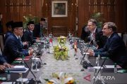 Menteri Luar Negeri Indonesia Sugiono (kiri) berbincang dengan Menteri Luar Negeri Jerman Johann Wadephul (kanan) saat pertemuan bilateral di Gedung Pancasila, Kementerian Luar Negeri, Jakarta, Rabu (20/8/2025). Pertemuan bilateral tersebut membahas penguatan kerja sama ekonomi, keamanan, serta mempererat hubungan strategis dengan Indo-Pasifik. ANTARA FOTO/Bayu Pratama S/rwa.