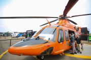 Pengunjung melihat helikopter jenis AW 139 milik Basarnas Indonesia yang dipamerkan diajang Heli Expo Asia 2025 di Cengkareng Heliport Bandara Soekarno-Hatta, Tangerang, Banten, Rabu (20/8/2025). Pameran yang berlangsung hingga Minggu (24/8) tersebut menghadirkan berbagai model helikopter dari berbagai instansi yang diharapkan dapat mendorong ekonomi baru dan inovasi transportasi udara. ANTARA FOTO/Muhammad Iqbal/foc.