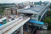 Foto udara proyek pembangunan LRT Jakarta Fase 1B di Jalan Pramuka, Jakarta, Jumat (22/8/2025). Progres pembangunan LRT Jakarta Fase 1B per 31 Juli 2025 telah mencapai 61,79 persen dan akan terhubung dari Velodrome hingga Manggarai sepanjang 6,4 km yang ditargetkan selesai dan dapat dioperasikan pada kuartal kedua 2026. ANTARA FOTO/Sulthony Hasanuddin/nz