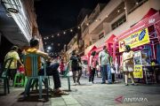 Warga berjalan di area Pasar Semawis, Jalan Gang Warung, Semarang, Jawa Tengah, Sabtu (4/10/2025). Pemkot Semarang kembali membuka Pasar Semawis di kawasan Pecinan tersebut yang sempat terhenti saat pandemi COVID-19 dalam rangka menghidupkan kembali denyut ekonomi warga dan mengembalikan keberadaan ikon wisata kuliner khas Kota Semarang. ANTARA FOTO/Aprillio Akbar/agr