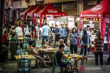 Warga berada di area Pasar Semawis, Jalan Gang Warung, Semarang, Jawa Tengah, Sabtu (4/10/2025). Pemkot Semarang kembali membuka Pasar Semawis di kawasan Pecinan tersebut yang sempat terhenti saat pandemi COVID-19 dalam rangka menghidupkan kembali denyut ekonomi warga dan mengembalikan keberadaan ikon wisata kuliner khas Kota Semarang. ANTARA FOTO/Aprillio Akbar/agr