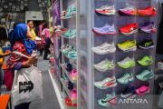 Pengunjung melihat produk olahraga yang dijual dalam kegiatan Wondr Jakarta Running Festival 2025 di Istora Senayan, Jakarta, Kamis (23/10/2025). Pameran tersebut diselenggarakan mulai 23-26 Oktober 2025 guna mengakomodasi kebutuhan pegiat olahraga lari. ANTARA FOTO/Rivan Awal Lingga/rwa.