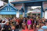 Jumenengan Raja Solo PB XIV. Kanjeng Gusti Pangeran Adipati Anom (KGPAA) Hamangkunegoro Sudibyo Rajaputra Narendra Mataram atau Gusti Purbaya (tengah) berjalan saat Jumenengan Dalem Nata Bhinayangkare atau upacara penobatan raja baru bergelar atau Sampeyan Dalem Ingkang Sinuhun Kanjeng Susuhunan (SISKS) Pakubowono XIV di Keraton Kasunanan Surakarta Hadiningrat, Solo, Jawa Tengah, Sabtu (15/11/2025). Upacara adat tersebut digelar untuk mengumumkan Hamangkunegoro sebagai pewaris tahta Keraton Surakarta Hadiningrat menggantikan ayahnya, Pakubuwana XIII yang wafat Minggu (2/11/2025). ANTARAFOTO/Maulana Surya/sgd
