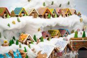 Deretan rumah-rumah Polandia yang terbuat dari kue jahe dan gula berwarna dipamerkan dalam Gingerbread City di Warsawa, Polandia, Rabu (19/11/2025). ANTARA FOTO/Xinhua/Jaap Arriens/rwa.