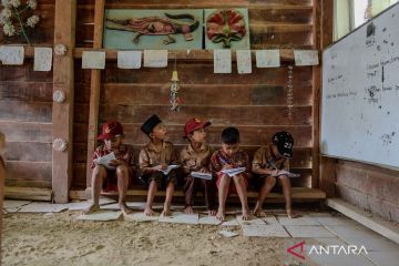 Foto: Pelajar daerah terpencil antusias hadir pada hari pertama masuk sekolah