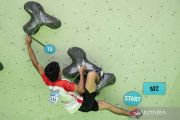 Atlet panjat tebing Kalimantan Selatan, M Ferxa Fernanda Abdi mengikuti babak kualifikasi boulder perorangan putra Kejuaraan Nasional Panjat Tebing XIX FPTI 2025 di kompleks GOR Jatidiri, Semarang, Jawa Tengah, Kamis (25/11/2025). Kejuaraan nasional yang digelar pada 25-29 November 2025 tersebut diikuti oleh 194 atlet dari 27 provinsi. ANTARA FOTO/Aprillio Akbar/YU