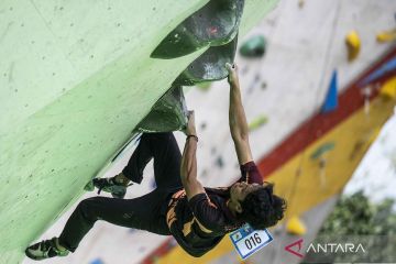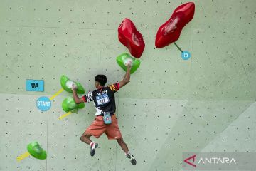 Atlet panjat tebing Aceh, Dani Syahfitra mengikuti babak kualifikasi boulder perorangan putra Kejuaraan Nasional Panjat Tebing XIX FPTI 2025 di kompleks GOR Jatidiri, Semarang, Jawa Tengah, Kamis (25/11/2025). Kejuaraan nasional yang digelar pada 25-29 November 2025 tersebut diikuti oleh 194 atlet dari 27 provinsi. ANTARA FOTO/Aprillio Akbar/YU