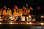 Sejumlah mahasiswa menyalakan lilin saat aksi solidaritas untuk korban bencana di Universitas Palangka Raya, Kalimantan Tengah, Kamis (4/12/2025). Aksi penyalaan lilin oleh mahasiswa tersebut sebagai bentuk kepedulian dengan melakukan penggalangan dana dan doa bersama untuk korban bencana banjir di Sumatera Utara, Sumatera Barat, dan Aceh. ANTARA FOTO/Auliya Rahman/YU