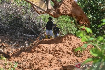 Pekerja menggunakan alat berat mengeruk tanah untuk membuka akses jalan di Kelurahan Sipange, Kecamatan Tukka,Tapanuli Tengah, Sumatera Utara, Selasa (9/12/2025). Pemerintah Tapteng akan mendatangkan 20 unit alat berat guna membuka akses jalan untuk memudahkan proses pengiriman bantuan logistik ke sejumlah wilayah yang terisolir. ANTARA FOTO/Muhammad Adimaja/nz