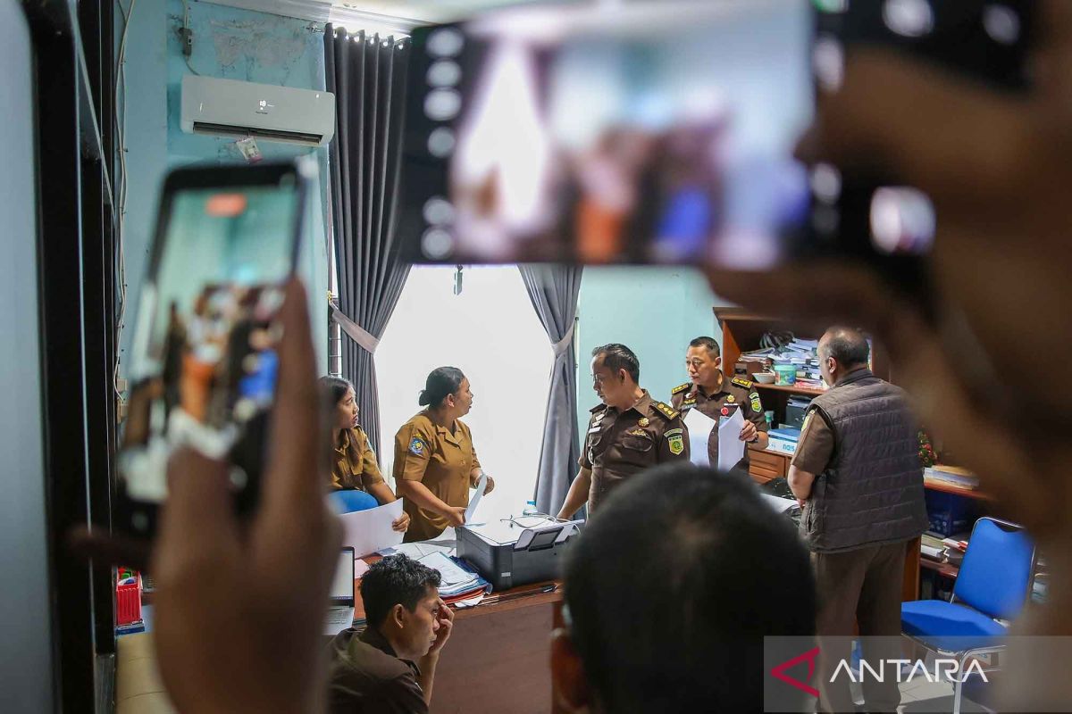 Penyidik pidana khusus (pidsus) Kejaksaan Tinggi Papua Barat melakukan penggeledahan di kantor Dinas Perhubungan (Dishub) Papua Barat, Manokwari, Papua Barat, Selasa (9/12/2025). Kejaksaan Tinggi (Kejati) Papua Barat menggeledah bagian ruang Perencanaan dan Keuangan Dishub Papua Barat terkait pengembangan kasus dugaan korupsi pembangunan dermaga apung Marampa tahap IV dan tahap V pada Anggaran Pendapatan Belanja Daerah (APBD) tahun 2016-2017 yang menyebabkan kerugian negara sebesar sebesar Rp17 miliar. ANTARA FOTO/Chairil Indra/nym.