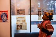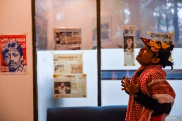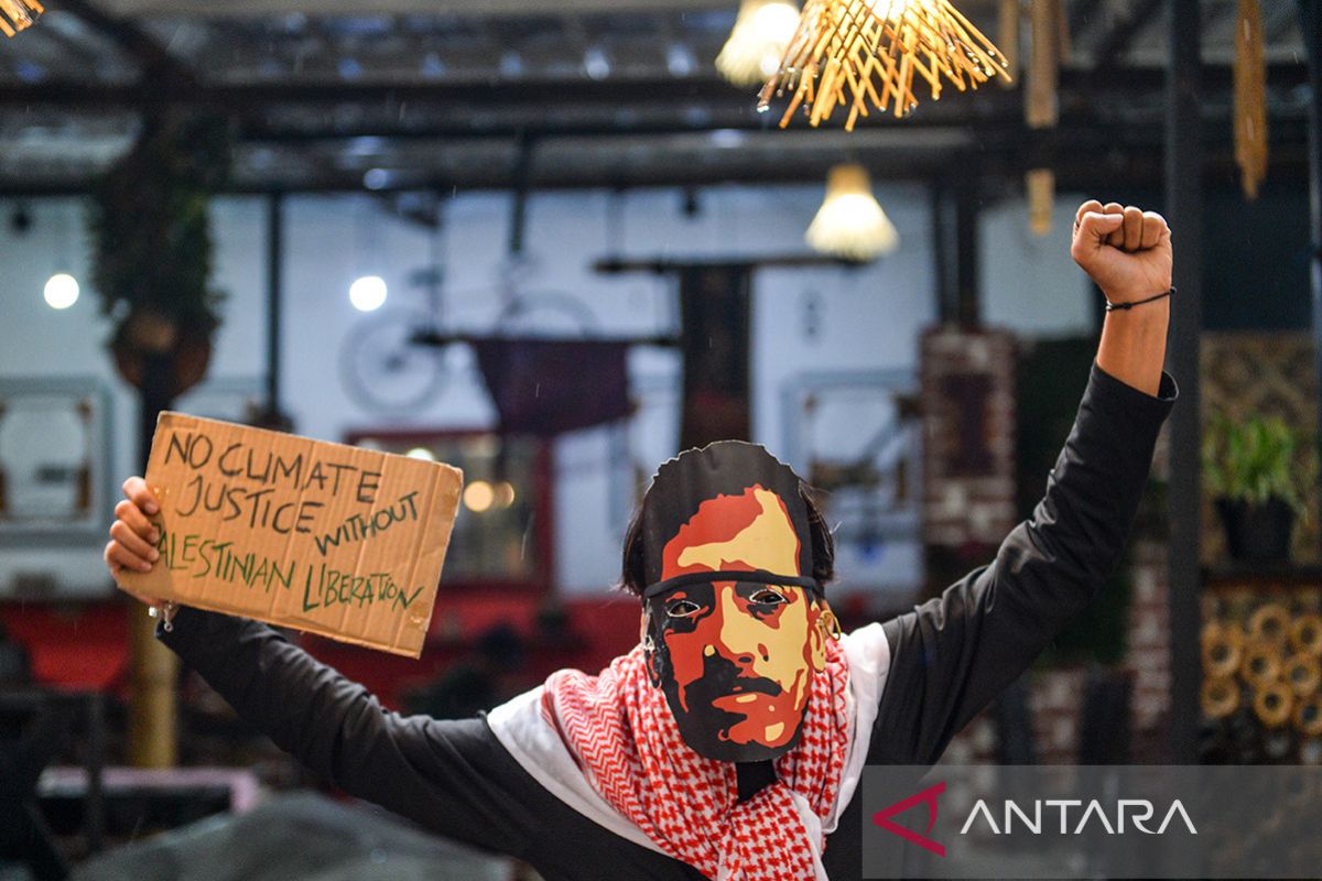 Seniman pantomim dari Mixi Imaji Mime Theater Andini Mardiani menampilkan gerakan pantomim dengan menggunakan topeng aktivis Munir Said Thalib saat peringatan Hari HAM Sedunia di Bandung, Jawa Barat, Rabu (10/12/2025). Peringatan Hari Ham Sedunia yang diadakan oleh Pusat Studi Mime Indonesia tersebut menghadirkan pameran arsip dan dokumentasi terkait perlawanan dan ketidakadilan serta penampilan seniman pantomim dari lintas disiplin ilmu. ANTARA FOTO/Raisan Al Farisi/foc.