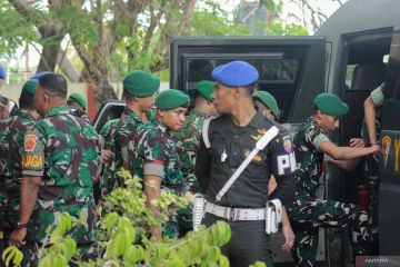 Seorang anggota polisi militer berjaga saat sejumlah terdakwa kasus penganiayaan yang menewaskan Prada Lucky Namo memasuki mobil usai menjalani sidang tuntutan di Pengadilan Militer III-15 Kupang, Nusa Tenggara Timur, Rabu (10/12/2025). Dua terdakwa kasus penganiayaan yang menewaskan Prada Lucky Namo dituntut hukuman sembilan tahun penjara, 15 terdakwa lainnya dituntut enam tahun penjara, dan semua terdakwa juga dituntut dengan pidana tambahan berupa pemecatan dari dinas militer Cq TNI Angkatan Darat. ANTARA FOTO/Mega Tokan/foc.