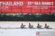 Tim dayung putra Indonesia (dari kiri) Ali Mardiansyah, Ihram, Rafiq Wijdan Yasir, Ardi Isadi memacu kecepatannya pada final nomor Quadruple Sculls dayung SEA Games 2025 di Royal Thai Navy Rowing and Canoeing Training Center, Ban Chang, Rayong, Chon Buri, Thailand, Selasa (16/12/2025). Indonesia berhasil menjadi yang tercepat dengan catatan waktu 6 menit 38,862 detik sehingga berhak atas medalli emas sedangkan medali perak diraih Vietnam dengan catatan waktu 6 menit 43,678 detik dan Thailand meraih medali perunggu dengan catatan waktu 6 menit 48,319 detik. ANTARA FOTO/Nova Wahyudi/tom.