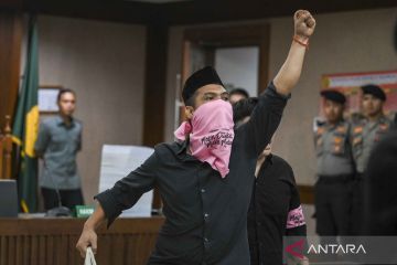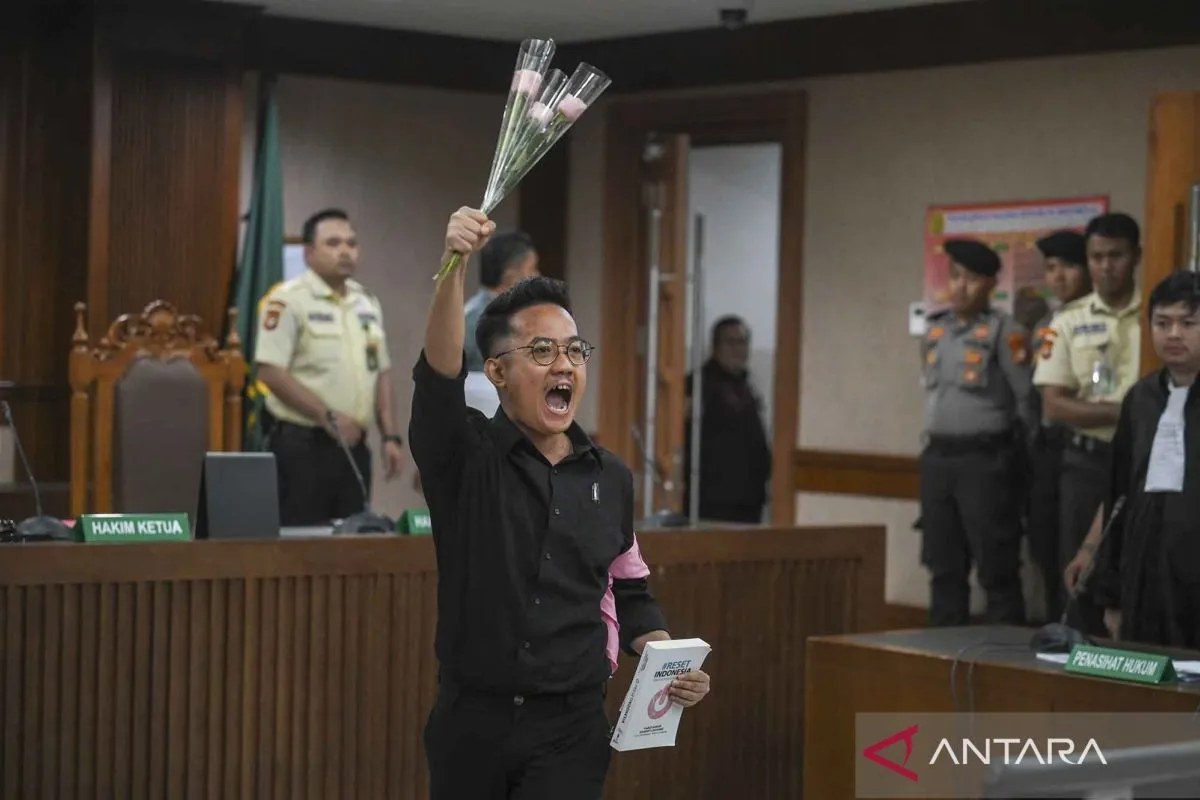 Admin instagram akun gejayanmemanggil Syahdan Husein bersiap menjalani sidang pembacaan dakwaan di PN Jakarta Pusat, Jakarta, Selasa (16/12/2025). Terdakwa Delpedro Marhein, Muzaffar Salim, Syahdan Husein, dan Khariq Anhar didakwa melakukan penghasutan dengan mengunggah konten media sosial terkait aksi demonstrasi pada Agustus 2025 yang berujung kericuhan. ANTARA FOTO/Hafidz Mubarak A/YU