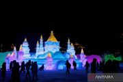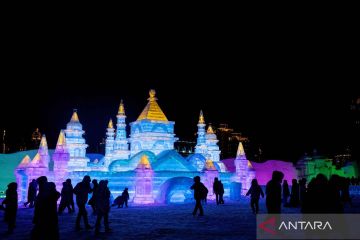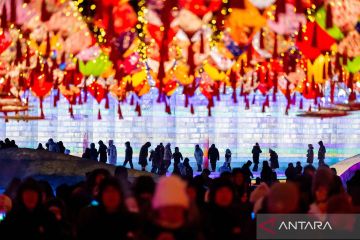 Warga mengunjungi taman hiburan es dan salju di Manzhouli, Daerah Otonomi Mongolia Dalam, China utara, Sabtu (20/12/2025). Festival ke-22 es dan salju internasional China-Rusia-Mongolia itu dibuka pada Sabtu (20/12) sebagai taman hiburan yang dibuat untuk festival ini mencakup area seluas 128.000 meter persegi. ANTARA FOTO/Xinhua/Lian Zhen/nym.