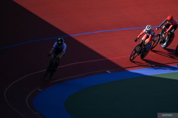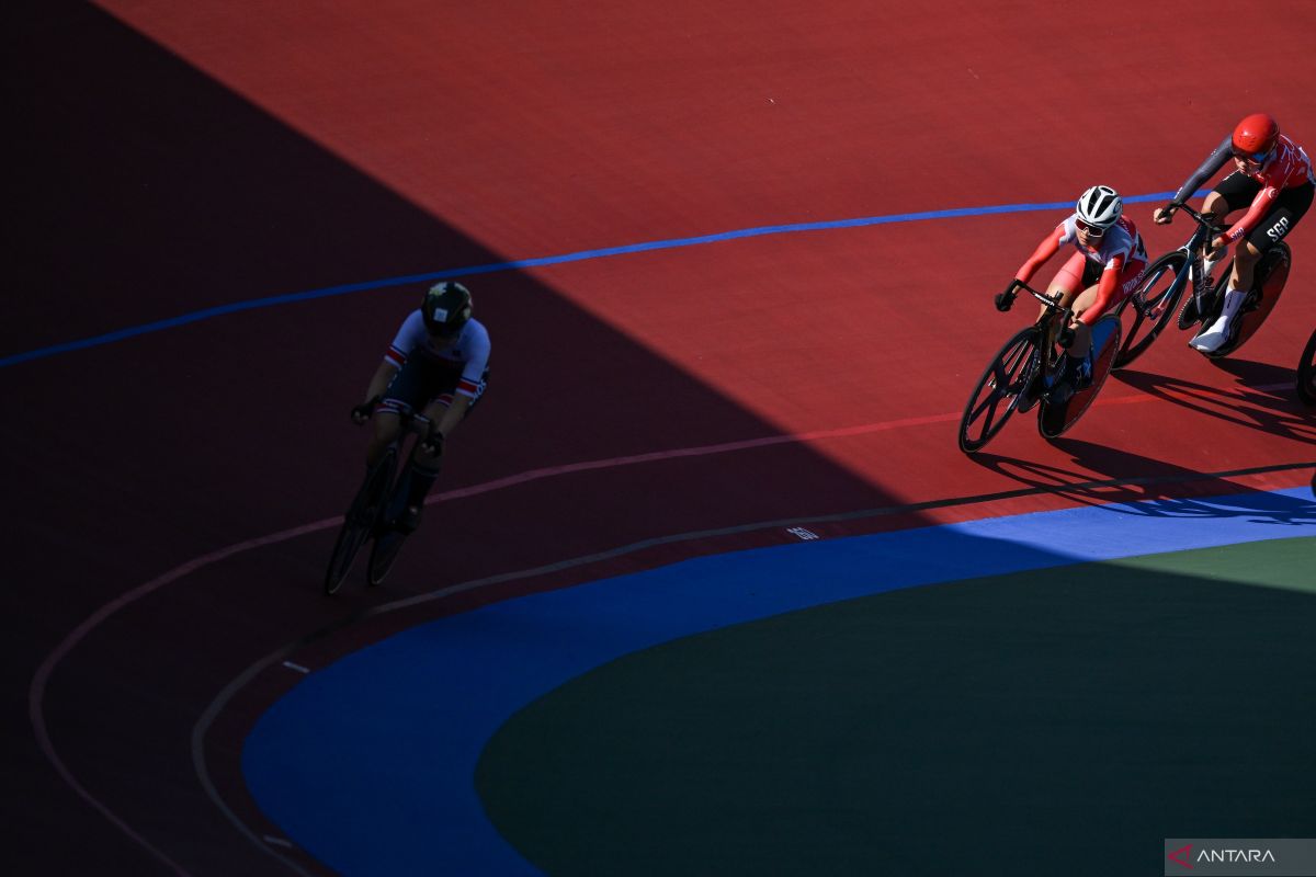 Pembalap sepeda Indonesia Ayustina Delia Priatna (kedua kanan) memacu kecepatan dalam final putri scratch SEA Games 2025 di Hua Mark Velodrome, Khwaeng Hua Mak, Khet Bang Kapi, Bangkok, Thailand, Kamis (18/12/2025). Ayustina meraih medali perunggu sedangkan medali emas diraih pembalap Malaysia Nur Aisyah Mohamad Zubir dan medali perak diraih pembalap Singapura Valencia Tan. ANTARA FOTO/Nova Wahyudi/nz