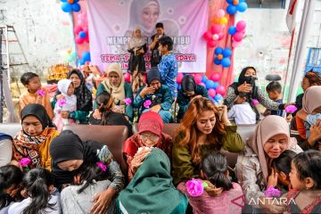 Sejumlah anak menyiapkan bunga untuk diberikan kepada ibunnya saat mengikuti peringatan Hari Ibu di Nyengseret, Astanaanyar, Bandung, Jawa Barat, Senin (22/12/2025). Peringatan Hari Ibu yang digelar oleh warga RW 05 Kelurahan Nyengseret tersebut diisi dengan tradisi sungkem atau meminta maaf sebagai bentuk ungkapan bakti dan kasih sayang kepada orang tua. ANTARA FOTO/Raisan Al Farisi/nz