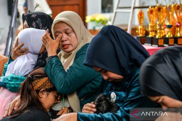 Sejumlah anak melakukan sungkeman kepada ibunya saat mengikuti peringatan Hari Ibu di Nyengseret, Astanaanyar, Bandung, Jawa Barat, Senin (22/12/2025). Peringatan Hari Ibu yang digelar oleh warga RW 05 Kelurahan Nyengseret tersebut diisi dengan tradisi sungkem atau meminta maaf sebagai bentuk ungkapan bakti dan kasih sayang kepada orang tua. ANTARA FOTO/Raisan Al Farisi/nz