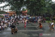 Seniman Reog Ponorogo tampil menghibur pengunjung di Taman Mini Indonesia Indah, Jakarta, Kamis (25/12/2025).Pengelola Taman Mini Indonesia Indah (TMII) mencatat saat libur Natal 2025 pada Kamis (25/12) jumlah pengunjung mencapai lebih dari 15.000 orang. ANTARA FOTO/Asprilla Dwi Adha/agr