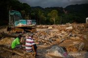 Pemanfaatan kembali sampah kayu. Warga korban banjir bandang dan longsor duduk di dekat sampah kayu di Hutanabolon, Kecamatan Tukka,Tapanuli Tengah, Sumatera Utara, Rabu (24/12/2025). Bupati Tapanuli Tengah Masinton Pasaribu menyatakan bahwa sampah kayu akibat banjir bandang dan tanah longsor hanya dapat dimanfaatkan untuk kepentingan penanganan darurat bencana, rehabilitasi dan pemulihan pascabencana seperti membangun kembali rumah, fasilitas umum dan sarana prasarana di wilayah terdampak seta tidak untuk dikomersilkan atau diperjual-belikan. ANTARA FOTO/Rivan Awal Lingga/nym.