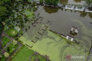 Foto udara banjir merendam kawasan situs cagar budaya Keraton Kaibon di Kasemen, Kota Serang, Banten, Sabtu (3/1/2026). Hujan deras yang mengguyur Kota Serang sejak Jumat (2/1) itu mengakibatkan aliran kali Cibanten meluap sehingga merendam kawasan peninggalan Kesultanan Banten situs cagar budaya Keraton Kaibon. ANTARA FOTO/Muhammad Bagus Khoirunas/agr