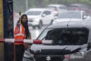 Petugas berbincang dengan pemilir saat memasuki Gerbang Tol Banyumanik menuju arah Jakarta di Semarang, Jawa Tengah, Sabtu (3/1/2026). PT Jasa Marga (Persero) Tbk memprediksi puncak arus balik libur Natal 2025 dan Tahun Baru 2026 akan jatuh pada Minggu (4/1) dengan volume lalu lintas yang menuju arah Jakarta melalui Tol Trans Jawa diperkirakan akan mencapai angka tertinggi yakni 196.000 kendaraan. ANTARA FOTO/Aprillio Akbar/agr