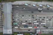 Foto udara sejumlah kendaraan menuju arah Jakarta memasuki Gerbang Tol Banyumanik di Semarang, Jawa Tengah, Sabtu (3/1/2026). PT Jasa Marga (Persero) Tbk memprediksi puncak arus balik libur Natal 2025 dan Tahun Baru 2026 akan jatuh pada Minggu (4/1) dengan volume lalu lintas yang menuju arah Jakarta melalui Tol Trans Jawa diperkirakan akan mencapai angka tertinggi yakni 196.000 kendaraan. ANTARA FOTO/Aprillio Akbar/agr