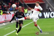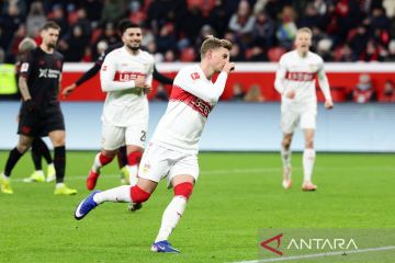 Pesepak bola VfB Stuttgart Maximilian Mittelstaedt (depan) berselebrasi usai membobol gawang Bayer 04 Leverkusen pada pertandingan Liga Jerman di BayArena, Leverkusen, Jerman, Sabtu (10/1/2026) waktu setempat. VfB Stuttgart mengalahkan tuan rumah Bayer 04 Leverkusen dengan skor 4-1. ANTARA FOTO/Xinhua/Joachim Bywaletz/tom.