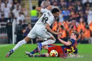 Pemain Real Madrid Kylian Mbappe berebut bola dengan pemain Barcelona Lamine Yamal pada final Piala Super Spanyol di King Abdullah Sports City Stadium, Jeddah, Arab Saudi, Senin (12/1/2026). Barcelona juara Piala Super Spanyol usai mengalahkan Madrid 3-2. ANTARA FOTO/REUTERS/Stringer/rwa.