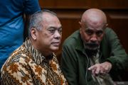 Terdakwa kasus dugaan korupsi jual beli gas Iswan Ibrahim (kiri) bersiap mengikuti sidang putusan di Pengadilan Tipikor, Jakarta, Senin (12/1/2026). Majelis Hakim memvonis mantan Komisaris PT Inti Alasindo Energy (IAE) tersebut dengan hukuman 5 tahun penjara, denda Rp250 juta subsider 6 bulan penjara serta uang pengganti 3,33 juta dolar Amerika Serikat subsider pidana penjara selama 3 tahun karena dinyatakan terbukti bersalah dalam kasus dugaan korupsi jual beli gas. ANTARA FOTO/Rivan Awal Lingga/foc.