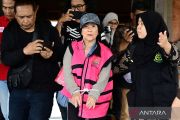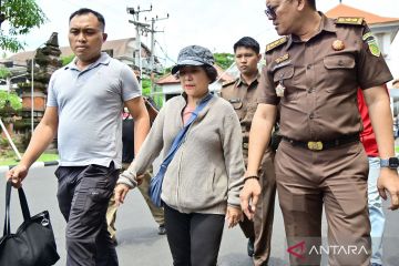 Petugas menggiring buronan terpidana kasus korupsi pemberian kredit fiktif Mila Indriani Notowibowo (tengah) di Kantor Kejaksaan Tinggi Bali, Denpasar, Bali, Rabu (14/1/2026). Mila Indriani yang telah divonis pidana 7,5 tahun penjara dalam kasus korupsi pemberian kredit investasi fiktif senilai Rp1,4 miliar dan telah masuk daftar pencarian orang (DPO) Kejari Surabaya sejak Februari 2023 tersebut ditangkap oleh jajaran kejaksaan di wilayah Kabupaten Bangli, Bali. ANTARA FOTO/Fikri Yusuf/bar
