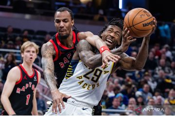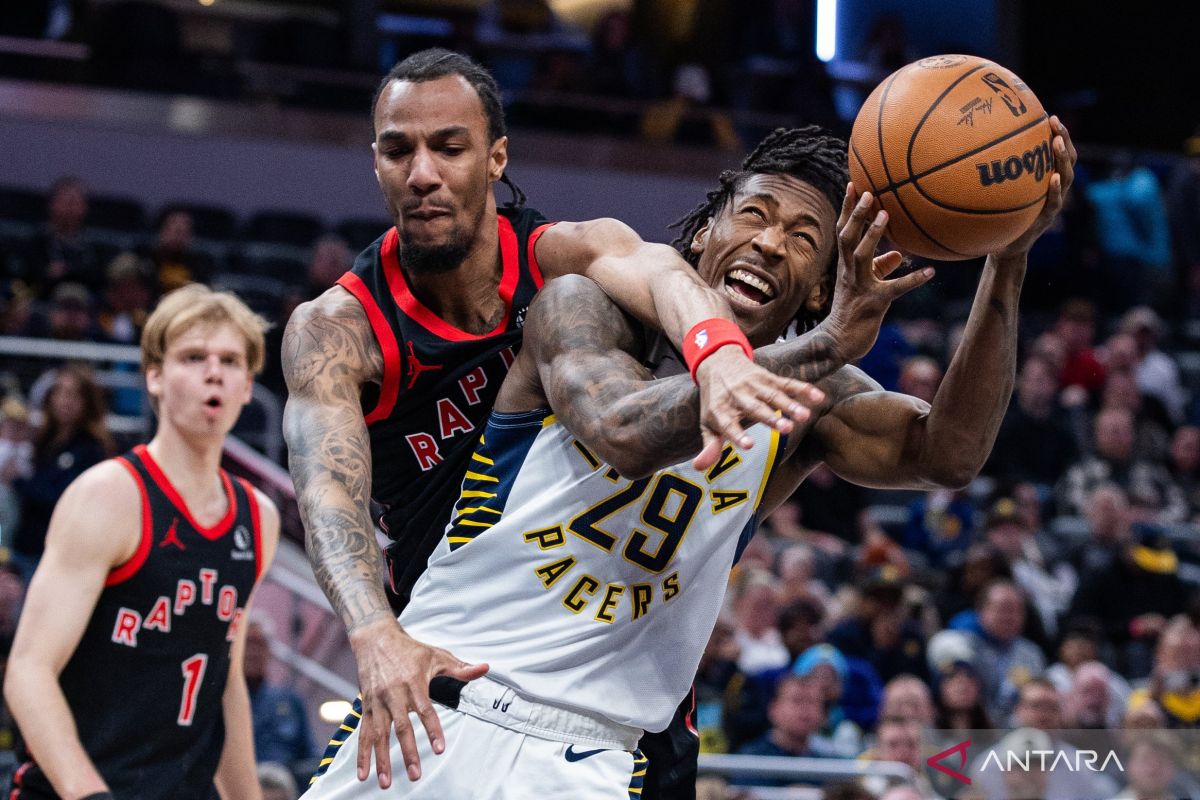 Pebasket Indiana Pacers Quenton Jackson (29) berusaha melepas tembakan dihalangi pemain Toronto Raptors A.J. Lawson dalam laga NBA di Gainbridge Fieldhouse, Indianapolis, Indiana, AS, Rabu (14/1/2026). Raptors menang dengan skor 115-101. ANTARA FOTO/Trevor Ruszkowski-Imagn ImagesIMAGN IMAGES via Reuters Connect/foc.